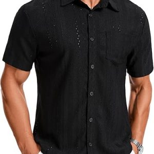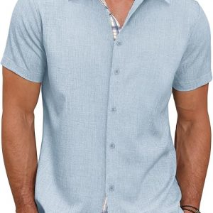 Mens Button Down Casual Summer Beach Shirts Short Sleeve Vacation Wedding Shirt with Pocket