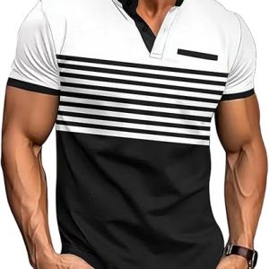 Mens T-Shirts Short Sleeve Button Casual Stylish Basic Tees Work Striped Shirts Henley Summer Lightweight Stretch Top