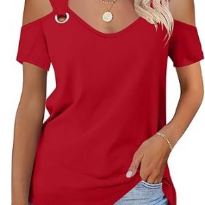 Minetom Women’s Cold Shoulder Tops Short Sleeve V Neck T Shirts Basic Summer Tees