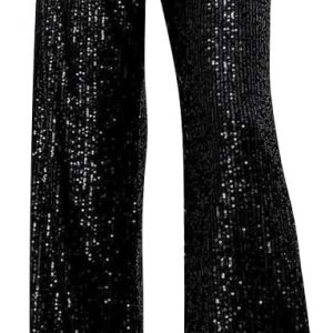 ODIZLI Womens Wide Leg Sparkle Sequin Pants Elastic High Waisted Bling Glitter Dance Pants