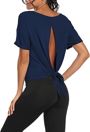 - Feature: The open back and slightly loose fit creates a breezy feel with more cooling as your run heats up. Features lightweight, flowy and comfy fit. Split back or knot back as you like, you can also tie it to adjust the tightness of clothes.
