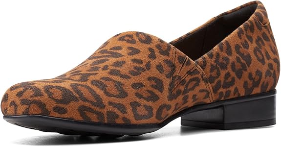 - Stack-effect low block heel lends a classic, feminine finish