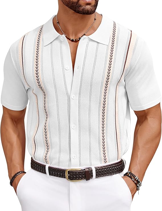 COOFANDY Knit Shirts for Men Casual Short Sleeve Button Down Shirts Summer Beach Stretch Fit Collared Shirts