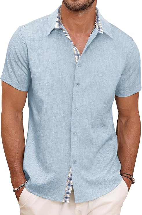 - Stylish Summer Beach Shirts: Features with short sleeve, spread collar, button down closure, chest pocket; Classic style with checkered pattern makes these button up shirts elegant and playful