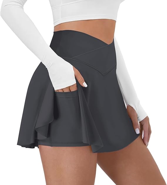 - Crossover Athletic Skirt:Designed with a trendy V-cut elastic waistband, these high waisted skirts for women emphasize your waistline and hips. The high-rise fit ensures effective tummy control without rolling down. Ideal for those looking for both style and functionality in athletic skirts