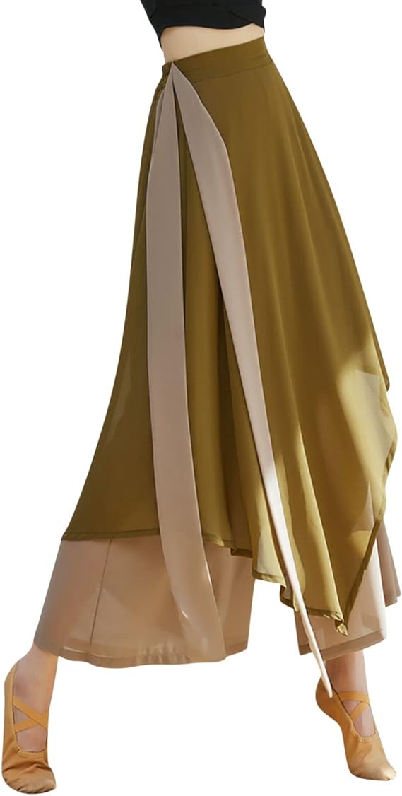 YOLAI Women’s Casual Chiffon Pants Colour Blocking Dance Wide Legged Long Pants Practice Exercises Dance Training Pants