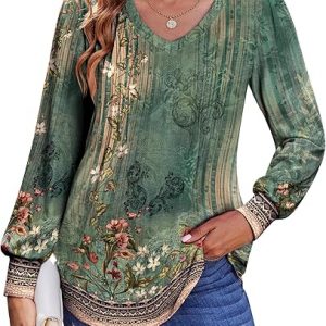 Zeagoo Women’s Puff Long Sleeve Shirts Pleated V Neck Fall Tunic Tops Blouse Dressy Casual Loose Summer T-Shirts