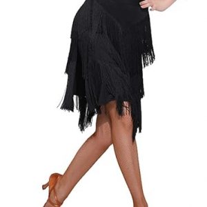 Z&X Women’s Ballroom Latin Tango Slasa Dance Skirt Fringe Split Leg Halloween Party Dance Dress with Shorts