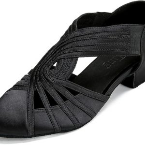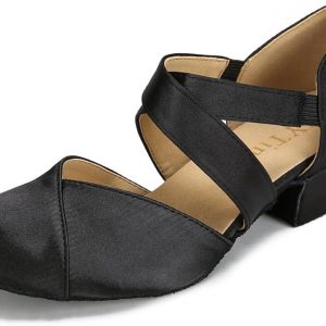 YYTing Women Swing Latin Ballroom Dance Shoes (Closed Toe, Suede Sole, Elastic Closure) 1.5 inch Heel YT26