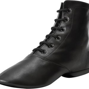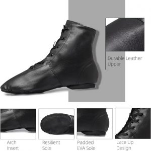 Jazz Boots Dance Shoes: High Top Black Jazz Shoes Lace Up – Premium Leather Dancing Shoes – Flat Split Sole Over Ankle Jazz Boots for Women Girls Kids and Men