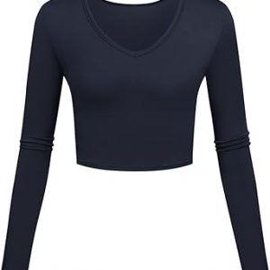 Kindcall V Neck Crop Tops Long Sleeve Shirts Slim Fit Base Layer for Women