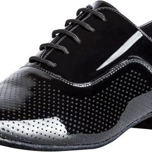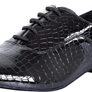Linodes Men’s Latin Dance Shoes 1 Inch Leather Sole Ballroom Salsa Tango Waltz Character Shoe-Black Patent Croco