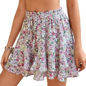 SimpleFun Womens Skorts Floral Ruffled Chiffon Flowy Shorts Summer Flared Mini Skirts