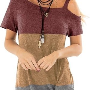 TEMOFON Women Cold Shoulder Tops: Summer Short Sleeve Shirts Casual Twist Knot Blouse T-Shirt S-2XL