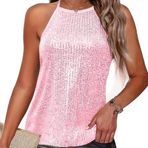 Traleubie Womens Tank Tops Sleeveless Camisole Halter Neck Sparkly Sequin Tops for Women