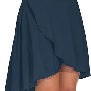 THE GYM PEOPLE Women’s High Waist Wrap Ruffle Hem Asymmetric Skort High Low Flowy Midi Skirt with Shorts