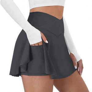 Tennis Skirt for Women with Pockets Shorts Crossover High Waisted Athletic Golf Skorts Running Workout Skirts 2 in 1