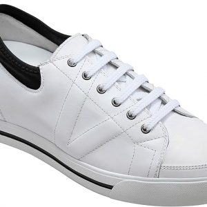 TOTO Men’s Invisible Height Increasing Elevator Shoes – White/Black Leather Lace-up Sneakers – 2.4 Inches Taller – D8171 – Size 8 D(M) US